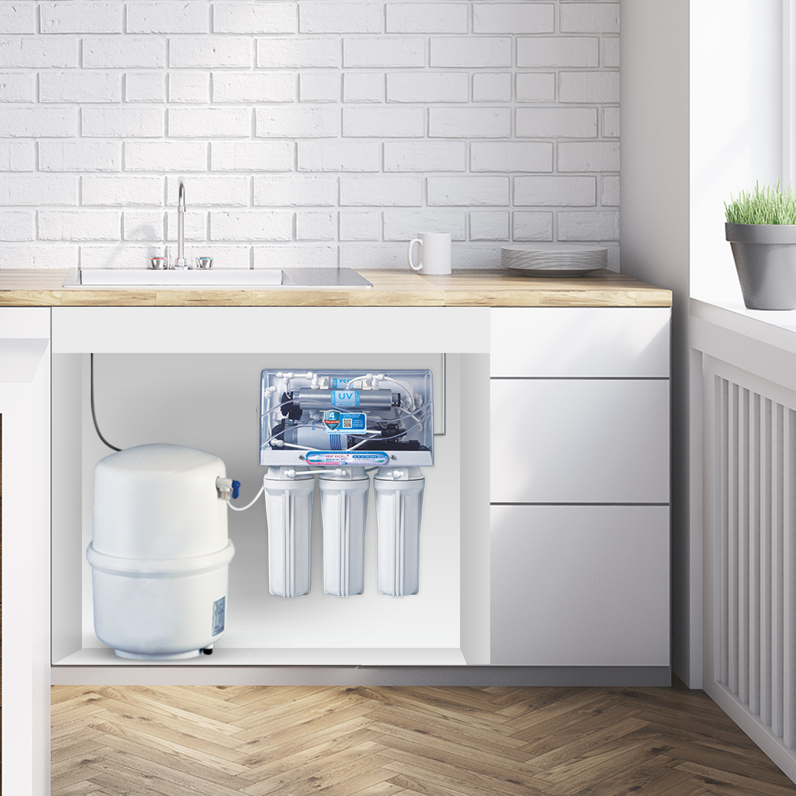 KENT brings you an advanced, under the counter RO water purifier which utilises multiple purification process of RO+UV+UF+TDS Control to make water 100% pure. Equipped with Mineral ROTM Technology, this purifier ensures that essentials minerals are retained in the purified water. Also, its 7 litres of storage capacity with a hydrostatic storage tank facilitates pressurised supply of purified water even in the absence of running water and electricity. Best suited for Indian kitchens, this purifier is ideal for purification of brackish/tap water/municipal corporation water supply.